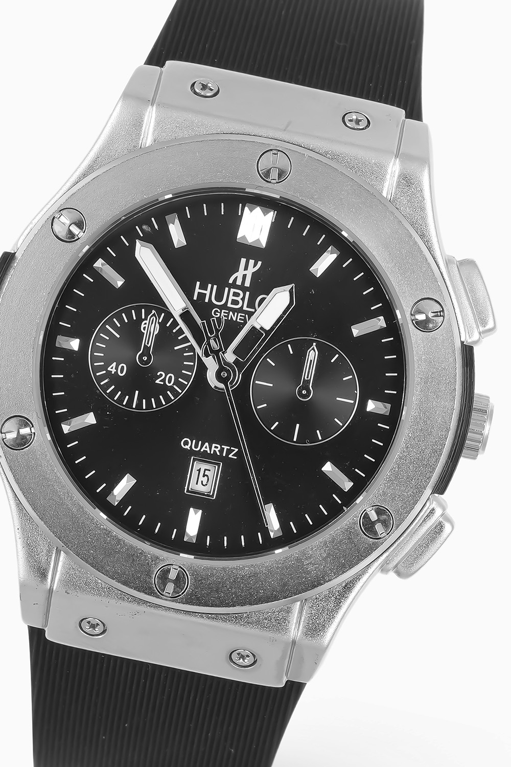Product Name: HB Big Bang Chrono Style Watch – Black & Silver Edition (Quartz)
