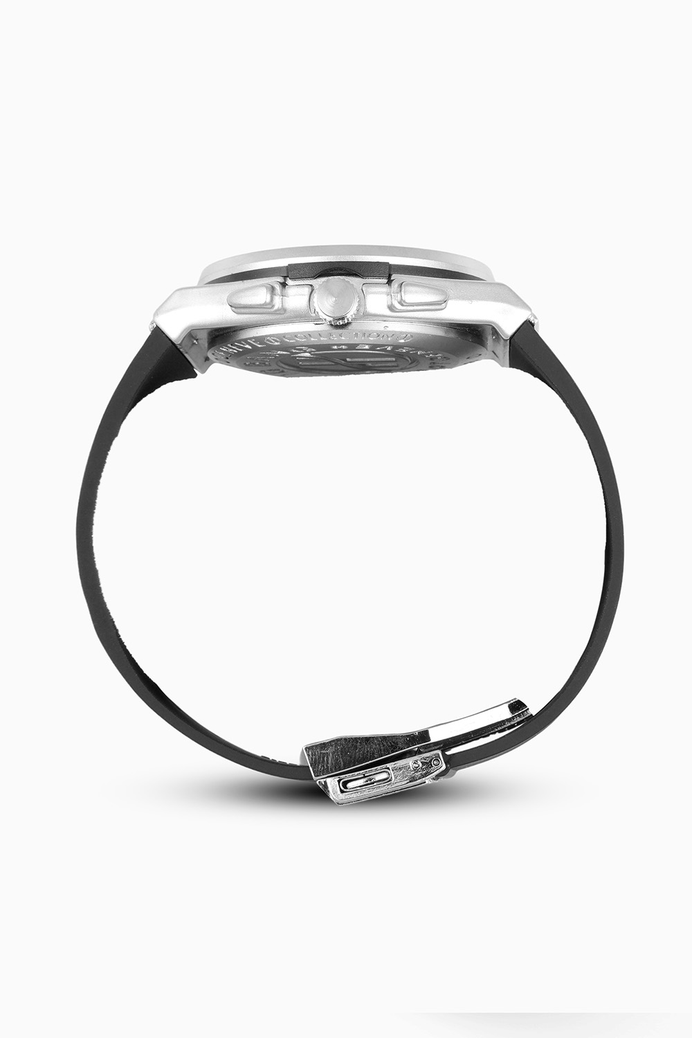 The durable black rubber strap offers all-day comfort, while the quartz movement ensures reliable timekeeping. With subdial styling, a date display, and an eye-catching industrial look, it’s the perfect match for men who prefer modern, rugged fashion.