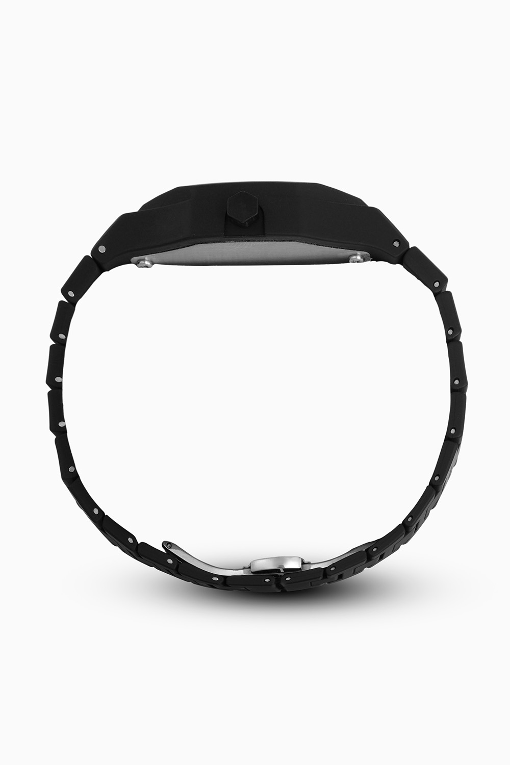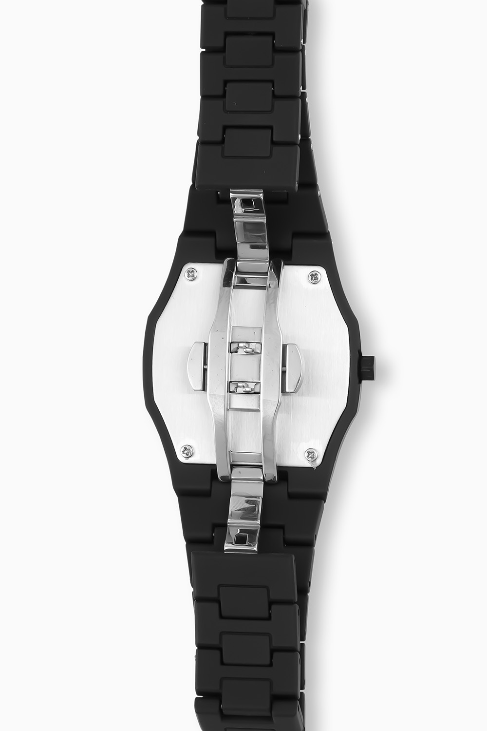 Crafted with a solid matte stainless steel body and strap, this watch is lightweight yet durable, ideal for everyday wear or as a standout piece in formal settings. The blacked-out look, combined with subtle engraved numerals, adds a mysterious and refined aesthetic that never goes out of style.