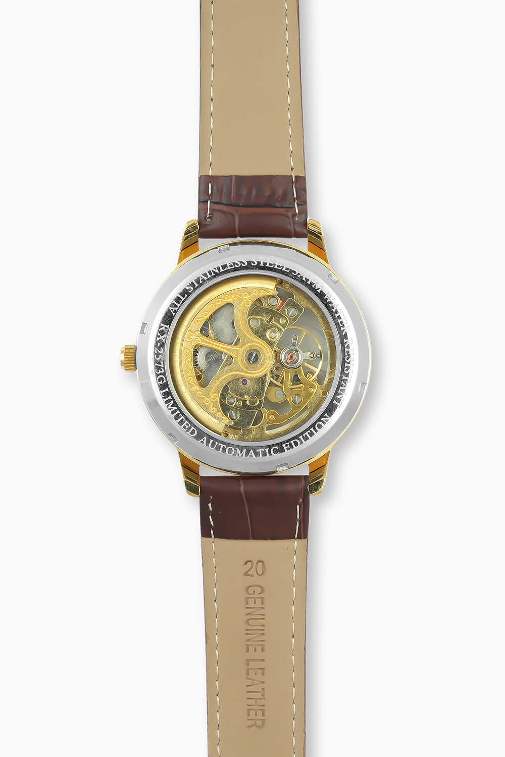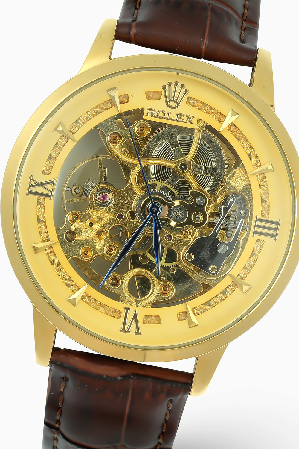 Product Name: Rolex Royal Gold Skeleton – Classic Mechanical Inspired Watch with Leather Strap