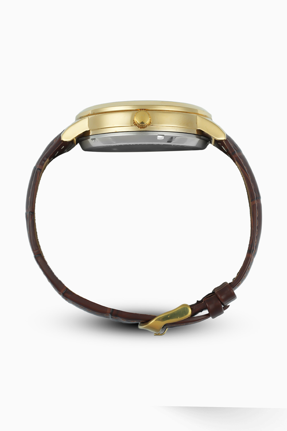 The Roman numeral indices and golden gear-work create a refined, luxurious look, while the brown croc-texture leather strap ensures all-day comfort and sophistication.